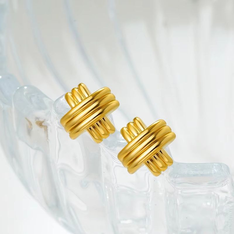 Fashion Glossy Three-Layer Textured Intersecting Knot Earrings for Women Gold Color Stainless Steel Earring Vintage Jewelry Gift