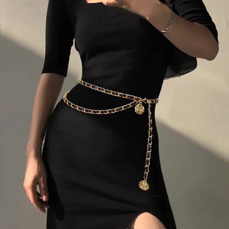 Fashion Gold Chain Belt Female Waist Flower Belts For Women High Quality Luxury Tassel Dress Waistband Adjustable Metal Corset