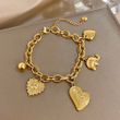Fashion Gold Plated Stainless Steel Chain Bracelet for Women Cute Star Heart Cherry Tassel Charms Bracelets Waterproof Jewelry