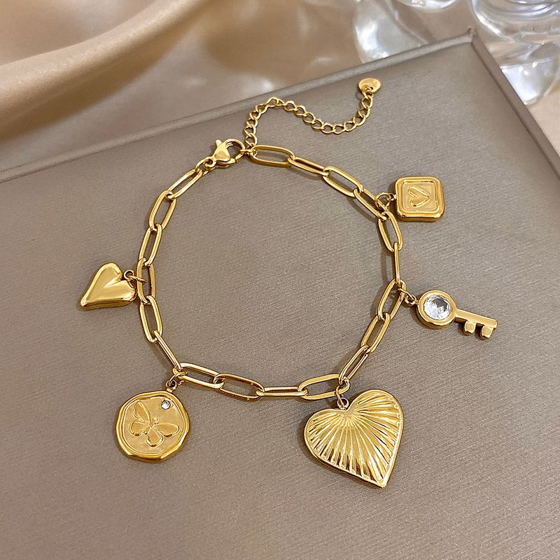 Fashion Gold Plated Stainless Steel Chain Bracelet for Women Cute Star Heart Cherry Tassel Charms Bracelets Waterproof Jewelry
