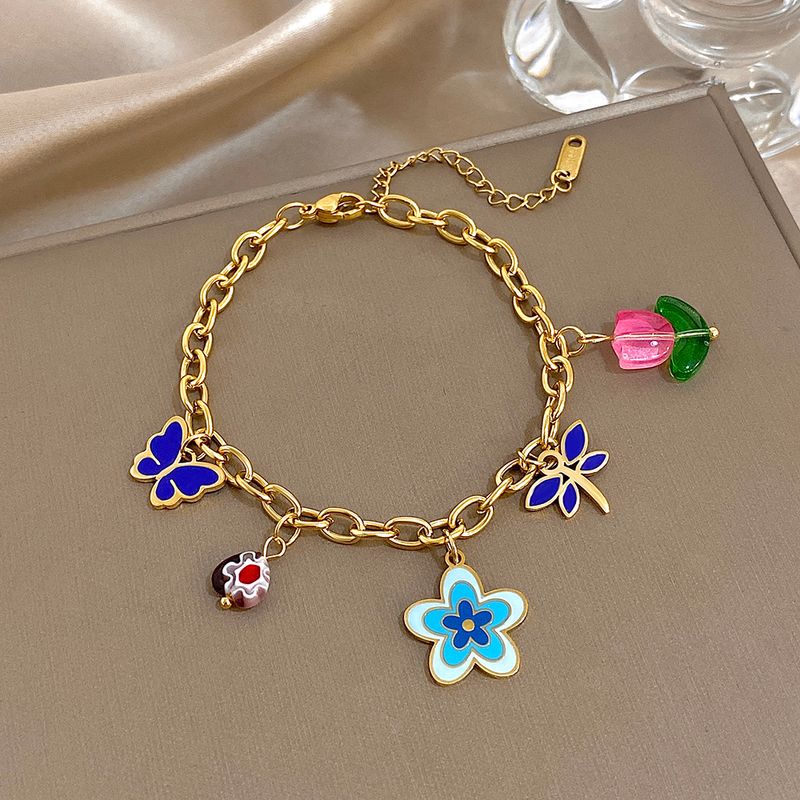 Fashion Gold Plated Stainless Steel Chain Bracelet for Women Cute Star Heart Cherry Tassel Charms Bracelets Waterproof Jewelry