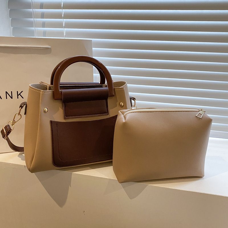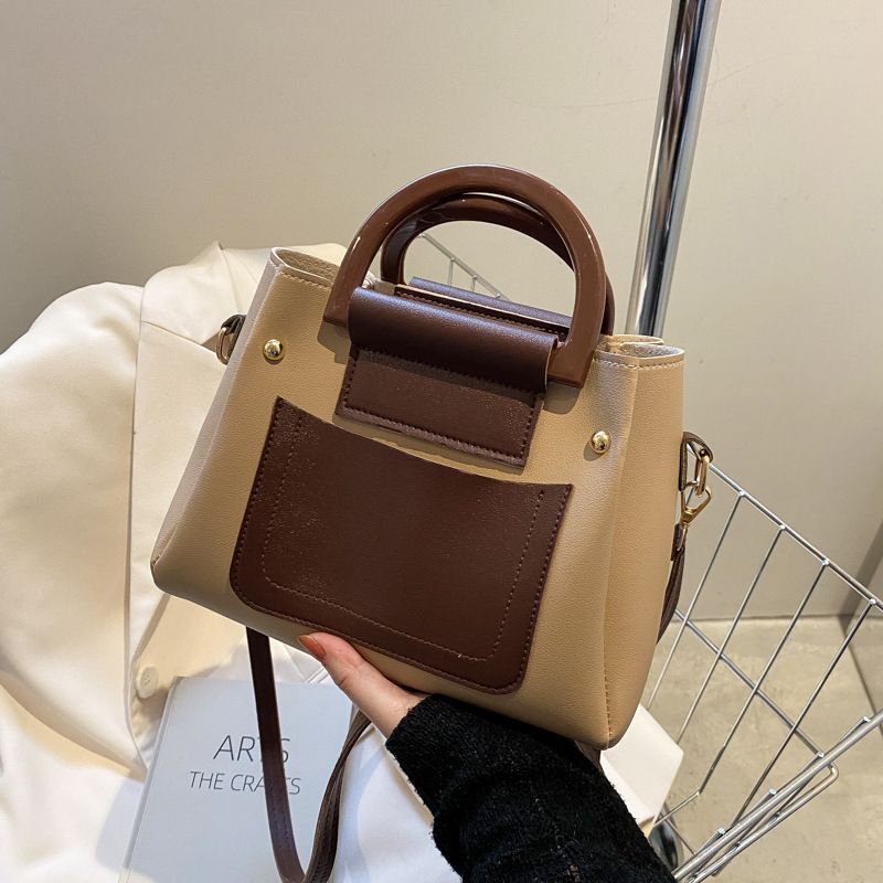 Fashion High-quality Contrast-colored Handbag Khaki