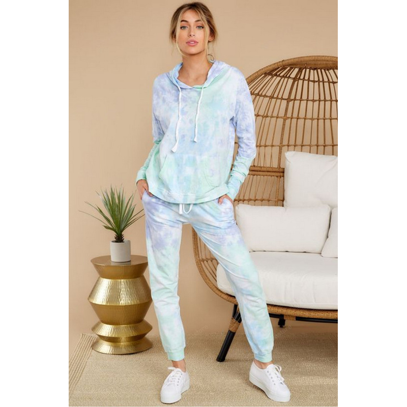 Fashion Home Casual Wear Two-Piece Long Sleeve Trouser Suit Blue 2XL
