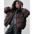 Fashion Hooded Warm Short Cotton Jacket Women Coffee Color M