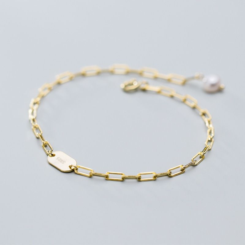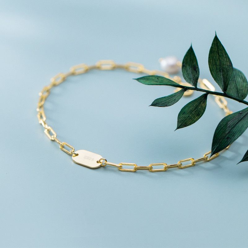 Fashion ins Wind Oval Disc Pearl Trendy Hand Jewelry Gold