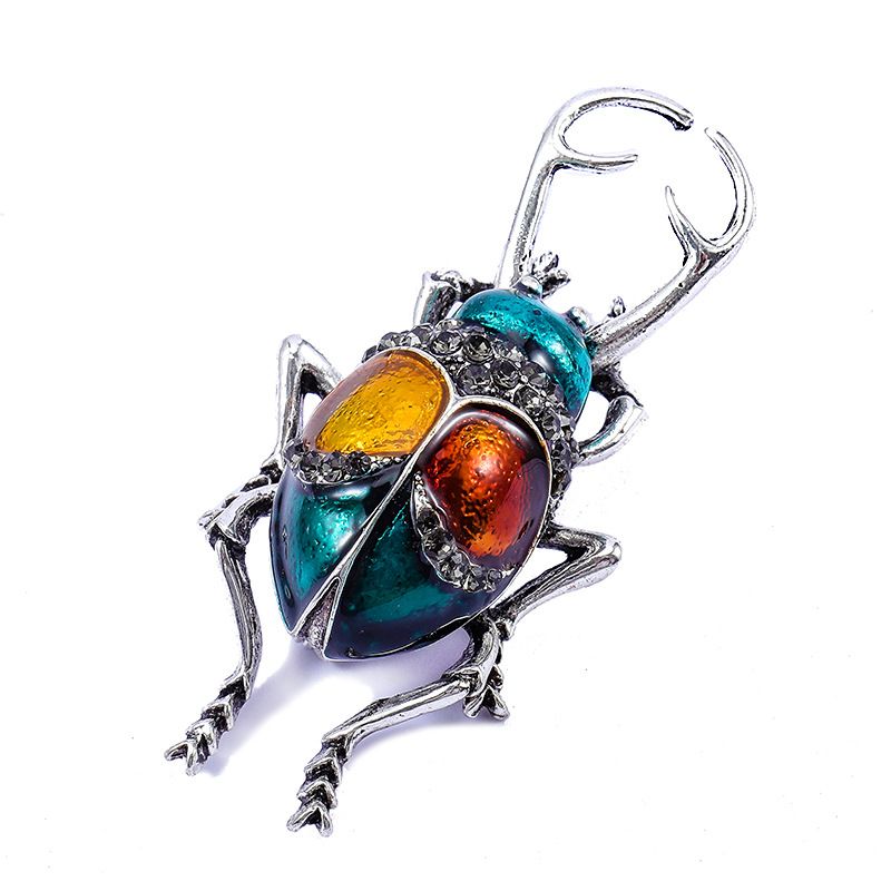 Fashion Insect Animal Brooch Men Women Retro Drip Oil Rhinestone Beetle Pin