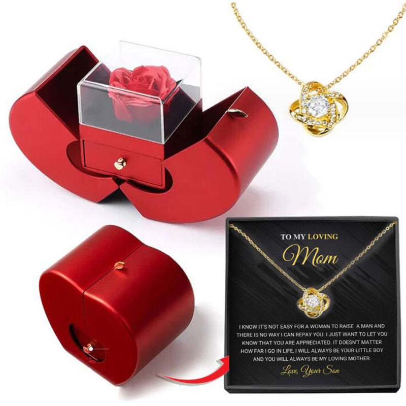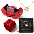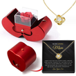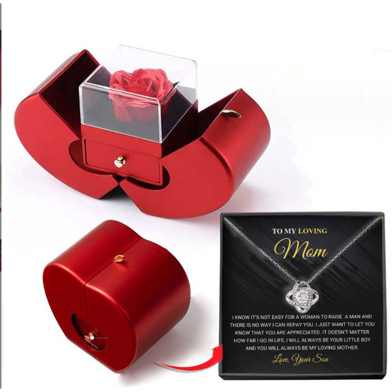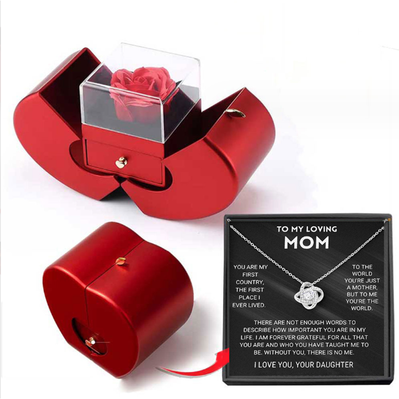 Fashion Jewelry Box Red Apple Christmas Gift Necklace Eternal Rose For Girl Mother's Day Valentine's Day Gifts With Artificial Flower Rose Flower Jewelry Box Necklace Silver Card Apple Box English