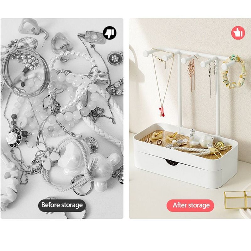 Fashion Jewelry Display Rack with Drawer Box Earrings Necklaces Jewelry Storage Rack with Wooden Base Desktop Storage Box