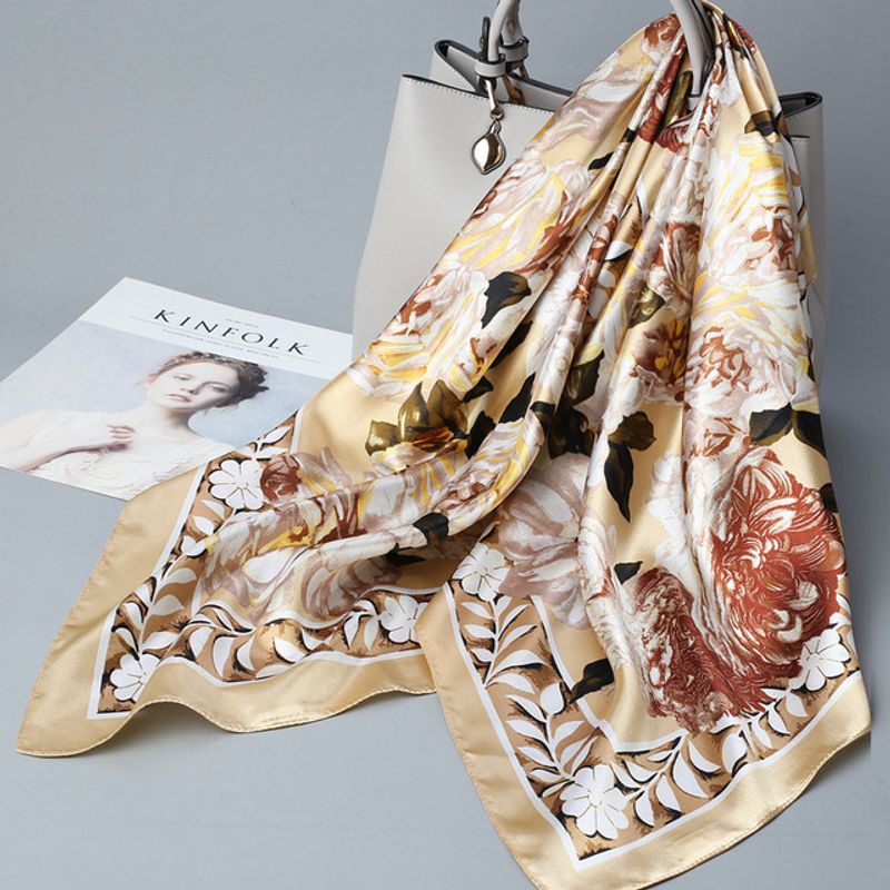 Fashion Kerchief Silk Satin Neck Scarf For Women Print Hijab Scarfs Female 90*90cm Square Shawls and Wraps Scarves For Lady