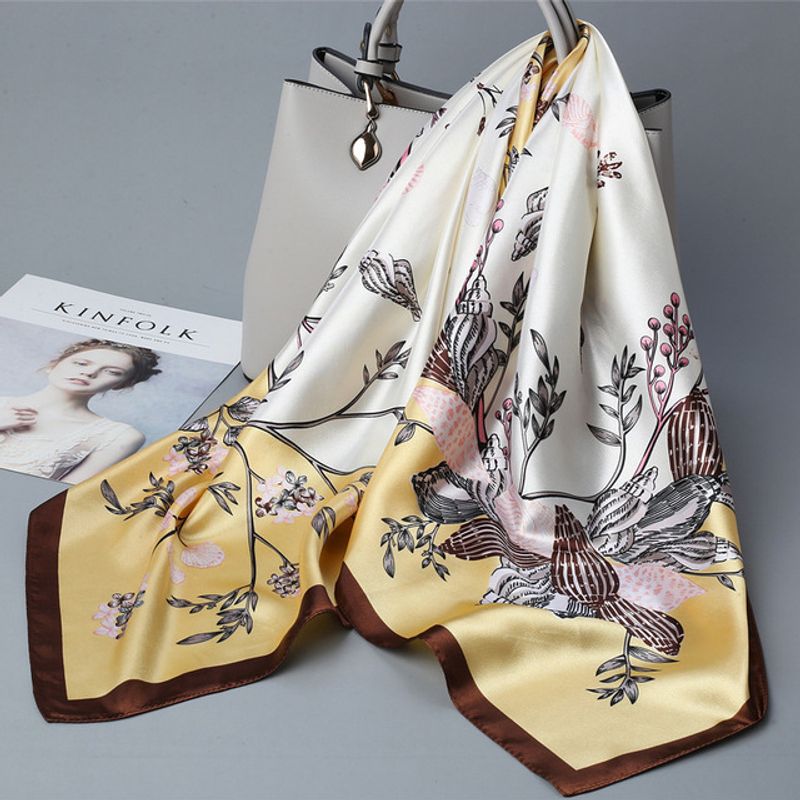 Fashion Kerchief Silk Satin Neck Scarf For Women Print Hijab Scarfs Female 90*90cm Square Shawls and Wraps Scarves For Lady
