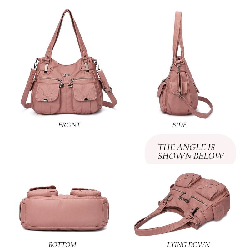 Fashion Ladies Soft Leather Portable Messenger Bag Crossbody Bags For Women Zipper Pocket Soft Casual Tote Black
