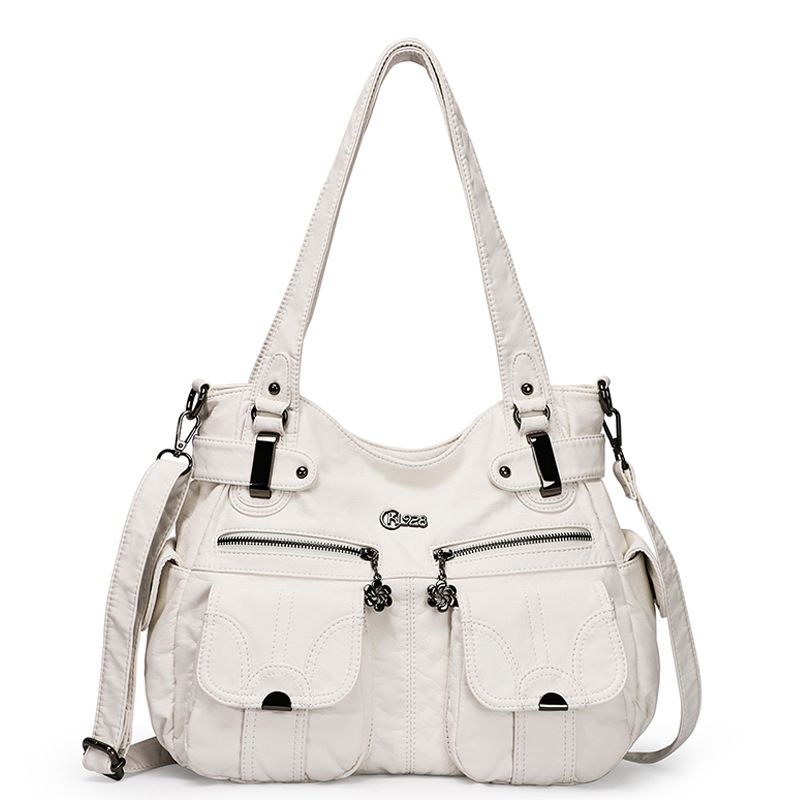 Fashion Ladies Soft Leather Portable Messenger Bag Crossbody Bags For Women Zipper Pocket Soft Casual Tote White