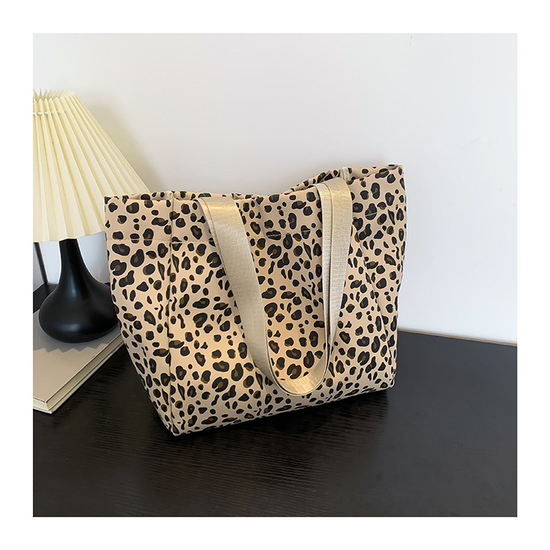 Fashion Leopard Print Tote Shoulder Bag Khaki Free Size