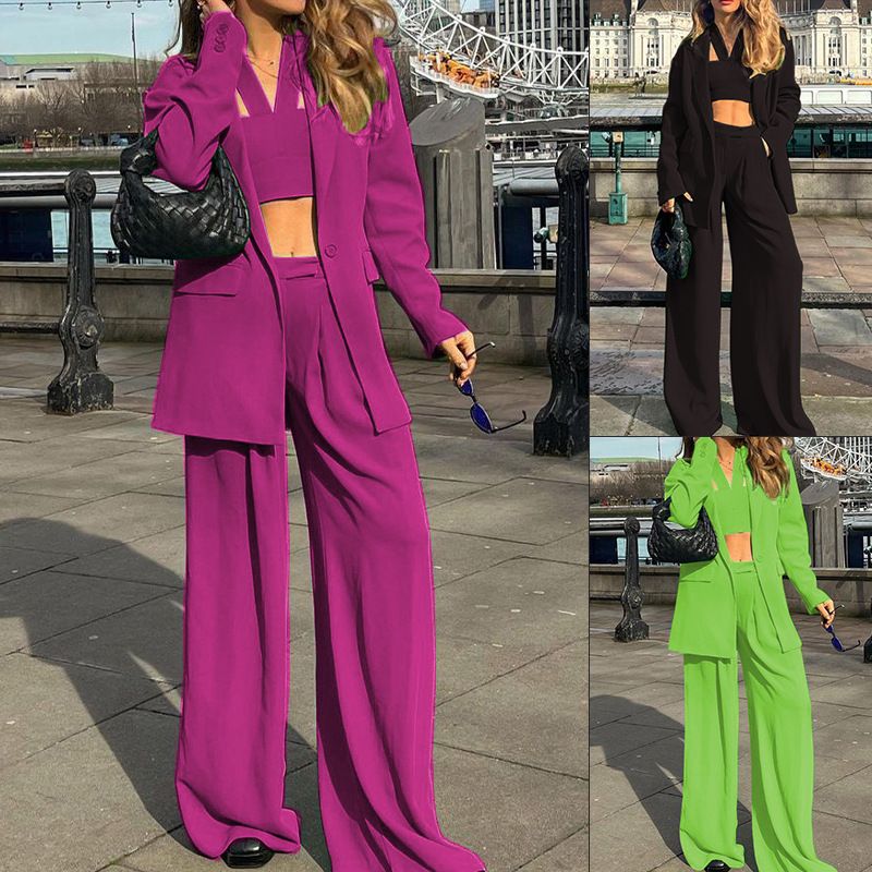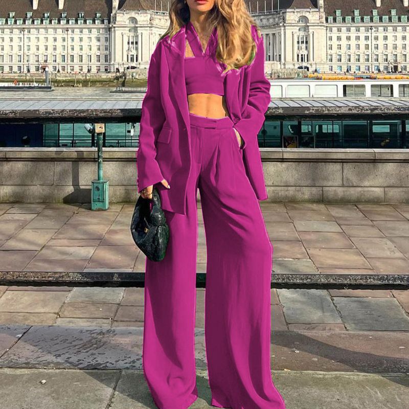 Fashion Long Sleeve Coat And Trousers Suit Rose Red S