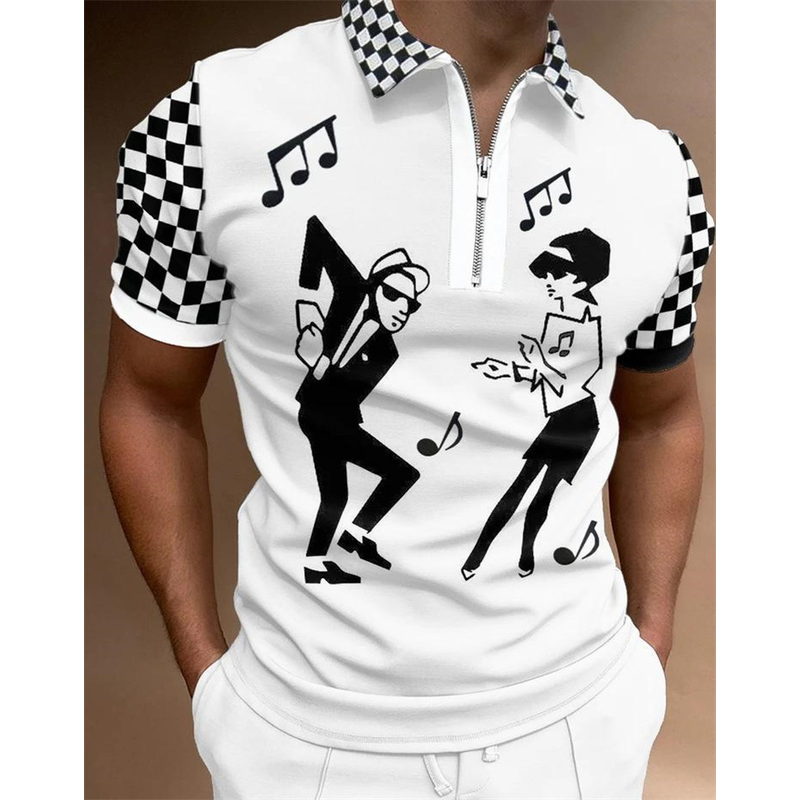 Fashion Loose Lapel Casual Print T-Shirt Zipper POLO Shirt