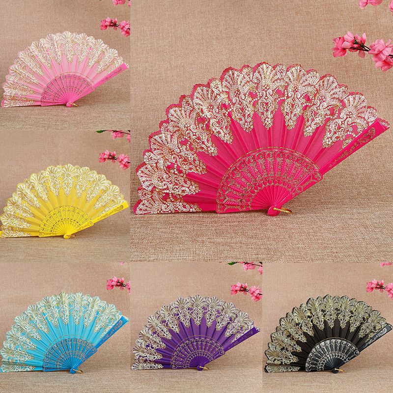 Fashion Luxury Folding Fan Flower Lace Silk Wedding Dance Party Stage Performance Decoration Fashion Hot Stamping Hand Held Fan