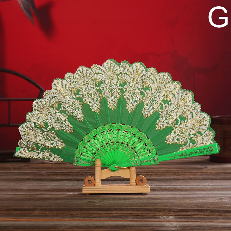 Fashion Luxury Folding Fan Flower Lace Silk Wedding Dance Party Stage Performance Decoration Fashion Hot Stamping Hand Held Fan
