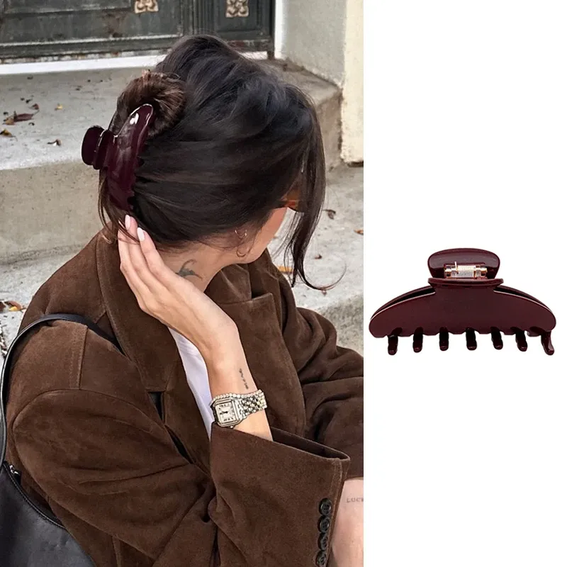 Fashion Melard Coffee Solid Color Women Hair Claw Clip Large Black Acetate Hair Clips for Girls Simple Summer Hair Accessories