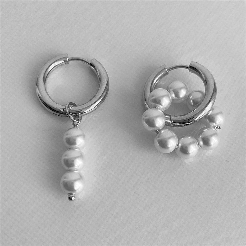 Fashion Metal Pearl U-Shaped Drop Earrings for Women Minimalist Silver Color Asymmetric Square Ear Buckle Jewelry Party Gifts