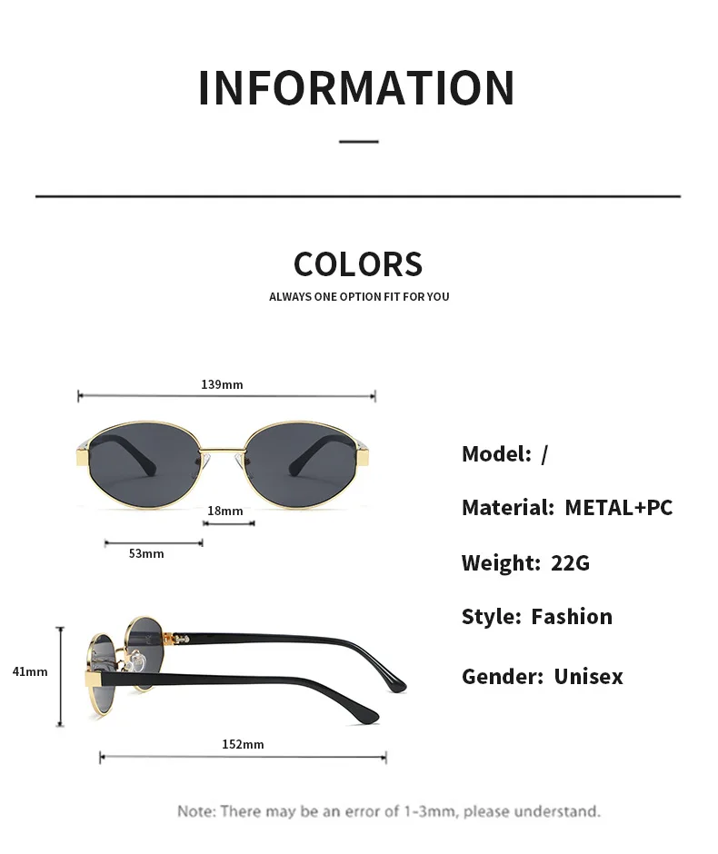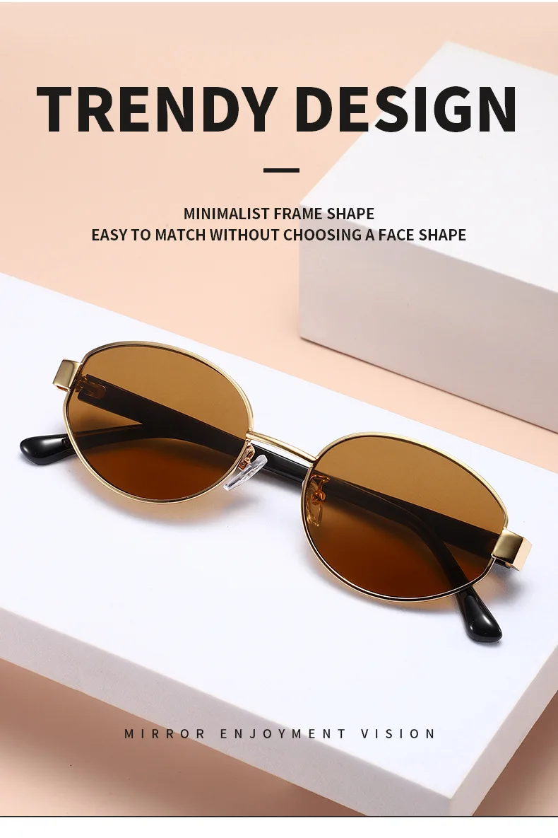 Fashion Oval Metal Sunglasses Women Brand Designer Vintage Retro Men Sport Sun Glasses For Female Mirror Eyewear UV400