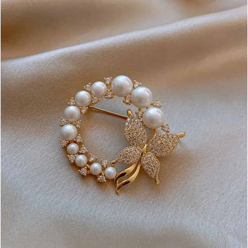 Fashion Pearl and Rhinestone Brooches for Women Baroque Trendy Butterfly Pins Clothes Accessories Wedding Gifts