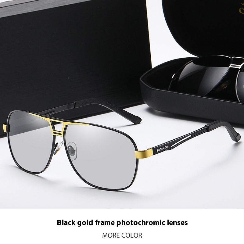 Fashion Personality Color-changing Polarized Sunglasses Men Black Gold Frame