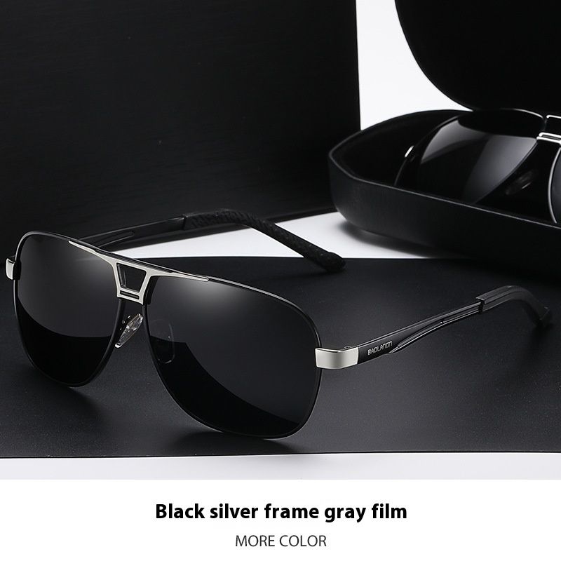 Fashion Personality Color-changing Polarized Sunglasses Men Black Silver Frame Gray Piece