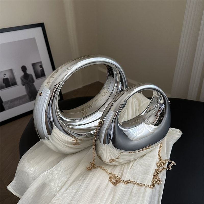 Fashion Portable Women's Acrylic Trendy Crossbody Bag Silver Trumpet Small Size