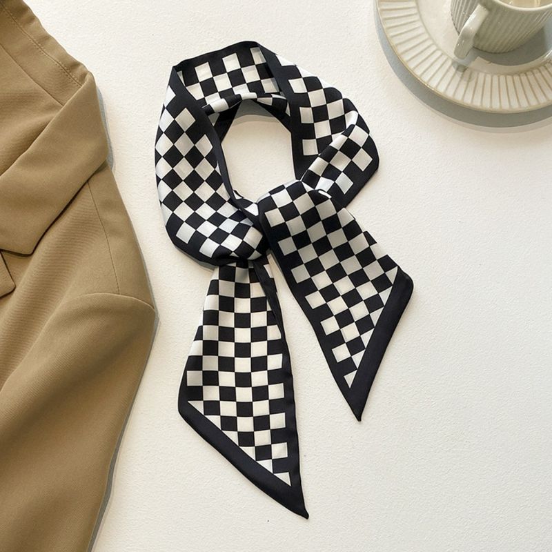 Fashion Print Silk Skinny Hair Scarf For Women Narrow Ribbon Tie Handle Bag Band Bandana Neckerchief