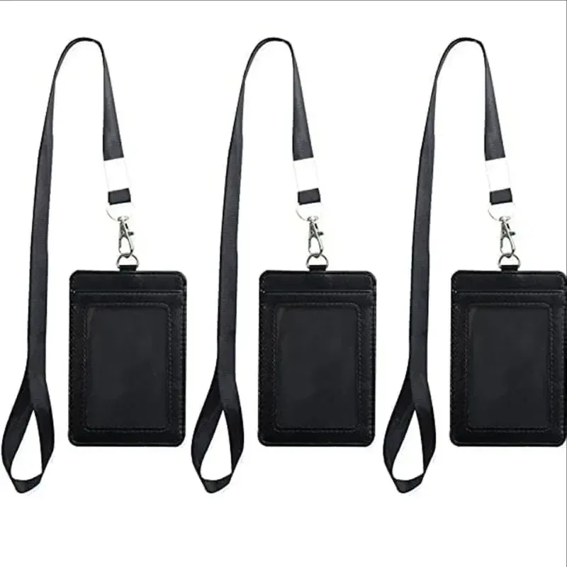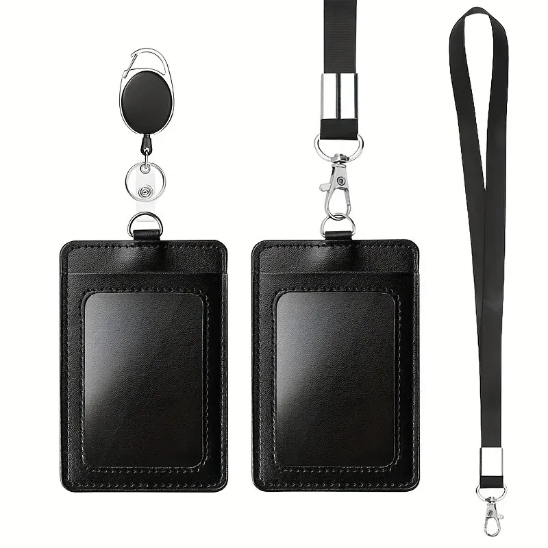 Fashion PU Leather Card Holders Set Women Men Student Retractable Badge Reel ID Card Holder Cover Case Nurse Badge Lanyards