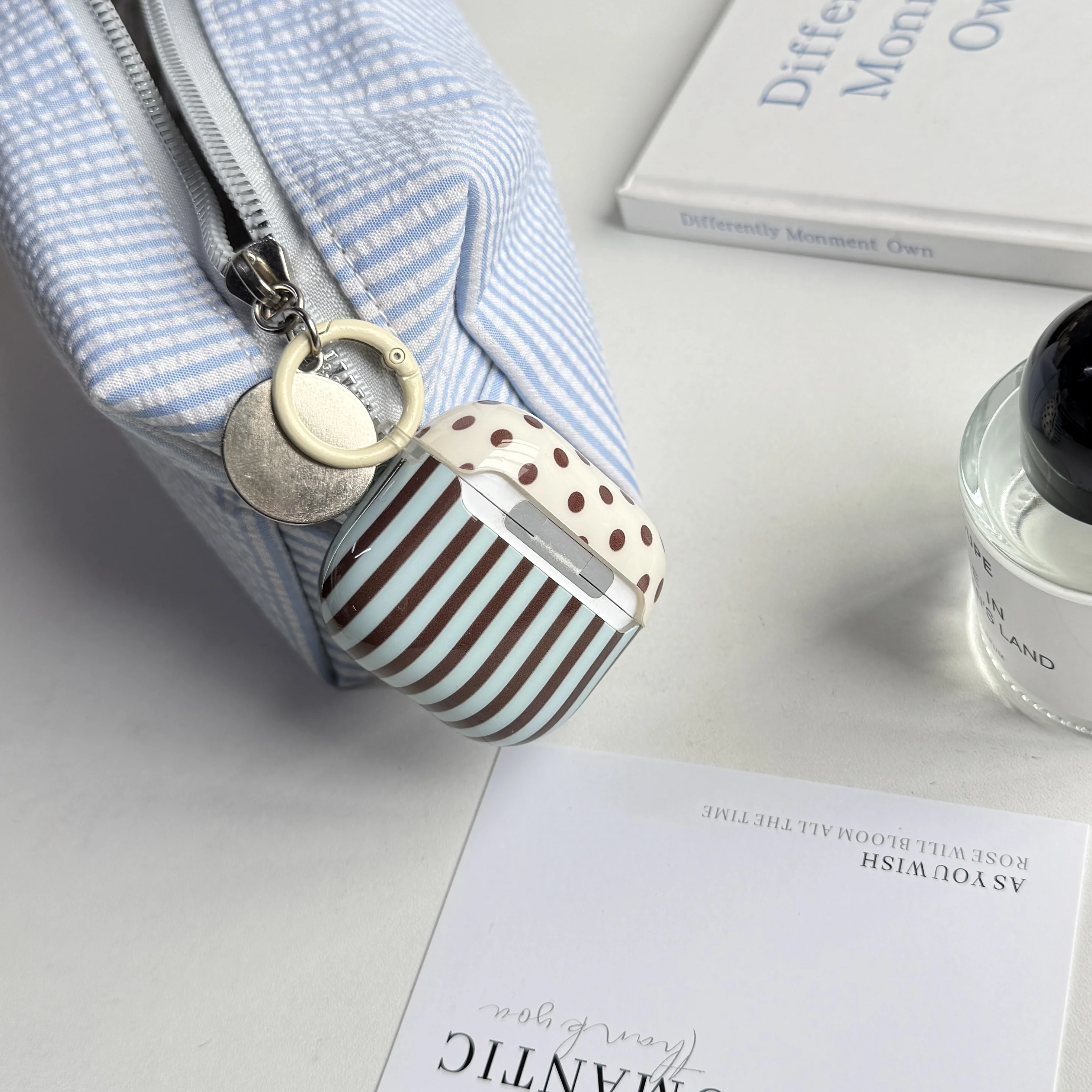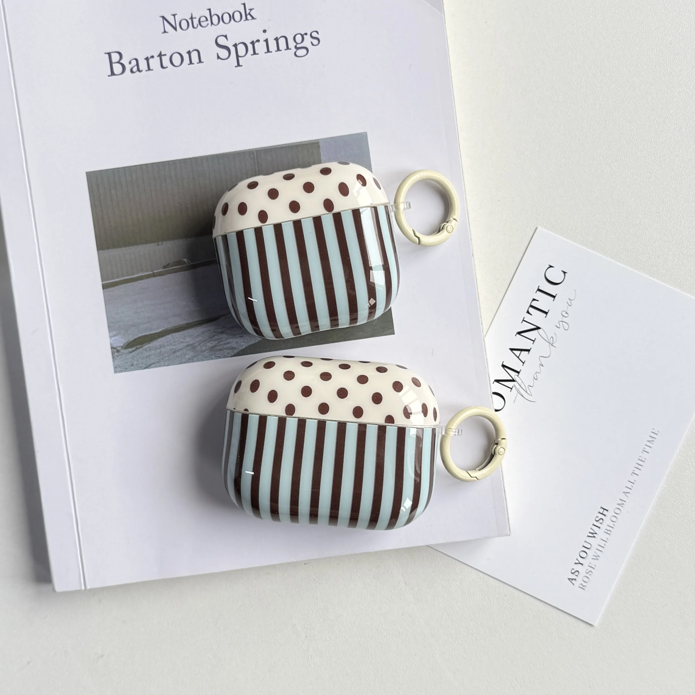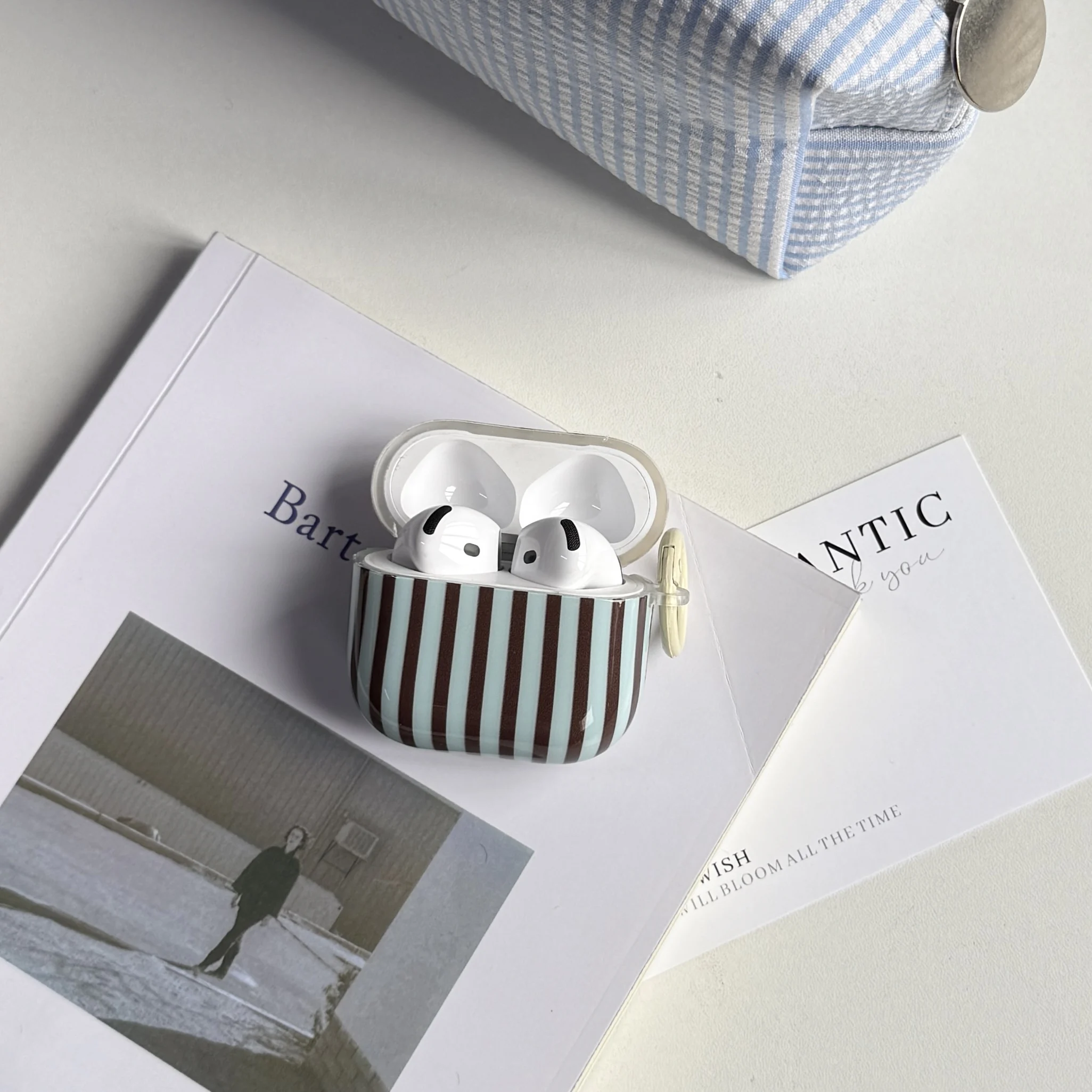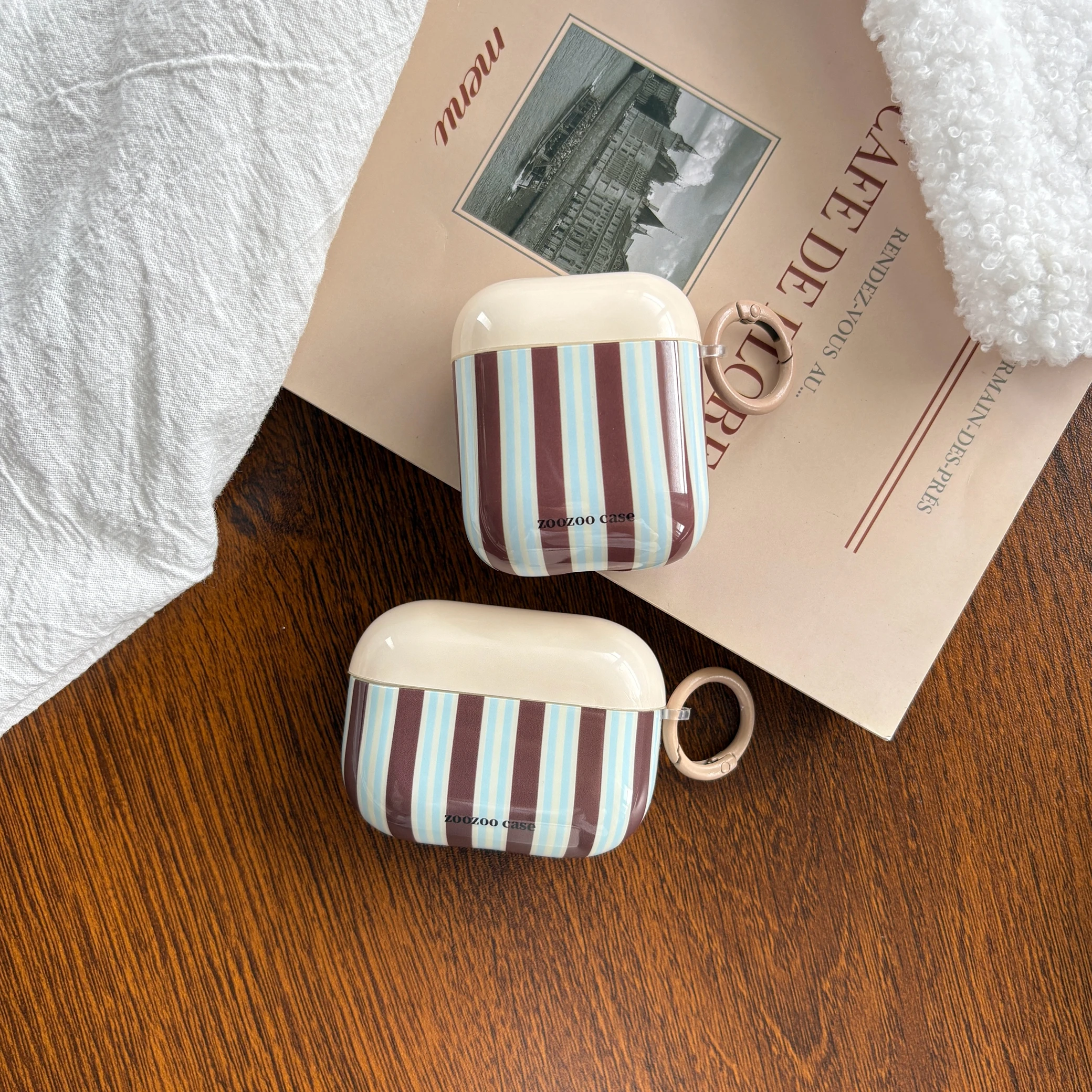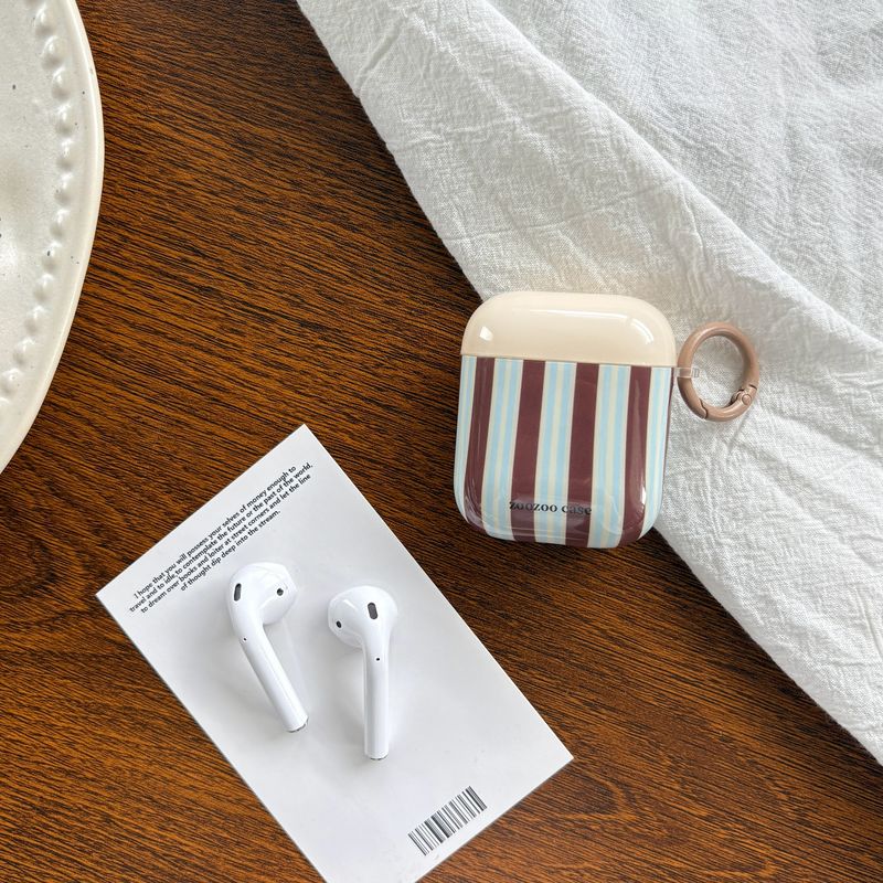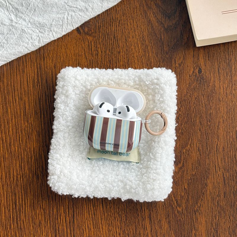 Fashion Retro Blue-Brown Stripe Line Pattern with Light Coffee Ring Earphone Case Cover for AirPods 1 2 3 4 Pro 2 Pro 3