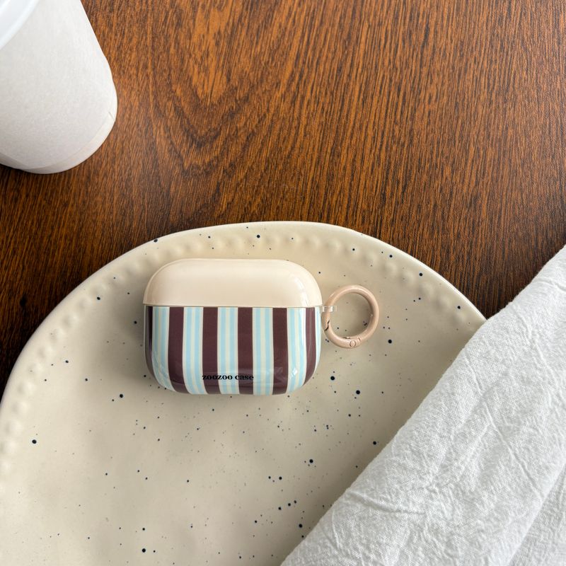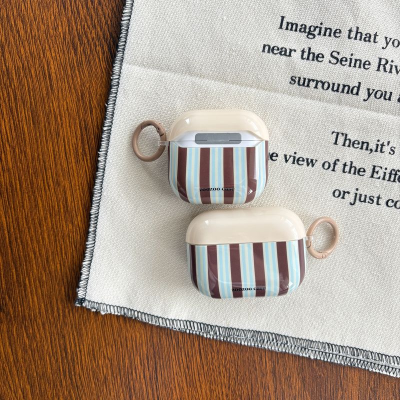 Fashion Retro Blue-Brown Stripe Line Pattern with Light Coffee Ring Earphone Case Cover for AirPods 1 2 3 4 Pro 2 Pro 3