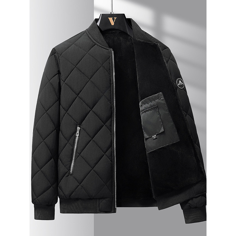 Fashion Rhombic-sewing Design Cotton Coat Winter Warm Thickened Baseball Jacket Casual Solid Color Outwear Clothing For Men