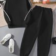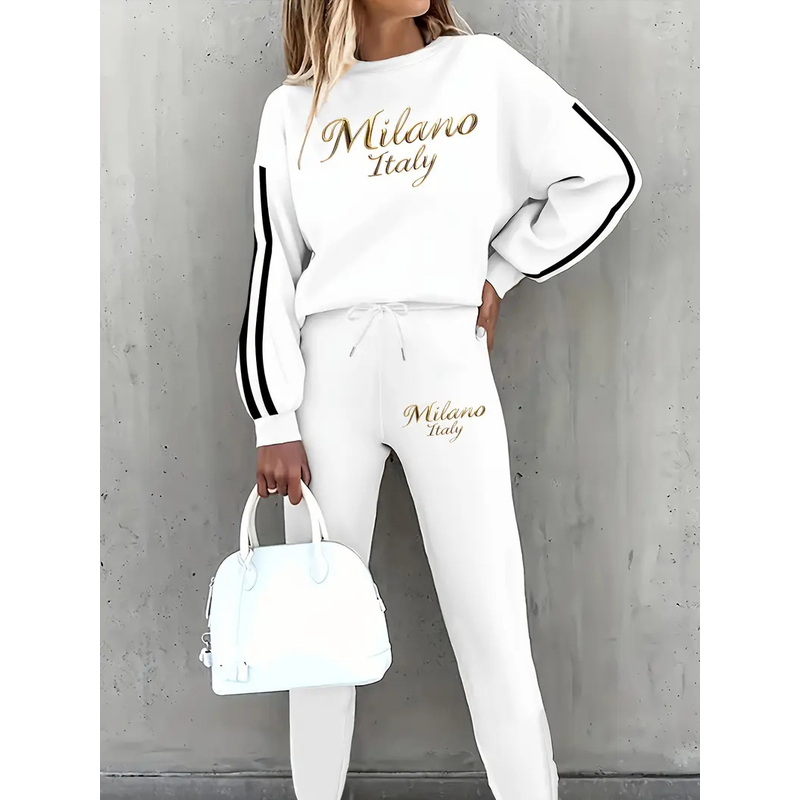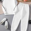 Fashion Round Neck All-matching Long-sleeved Trousers Casual Suit White S
