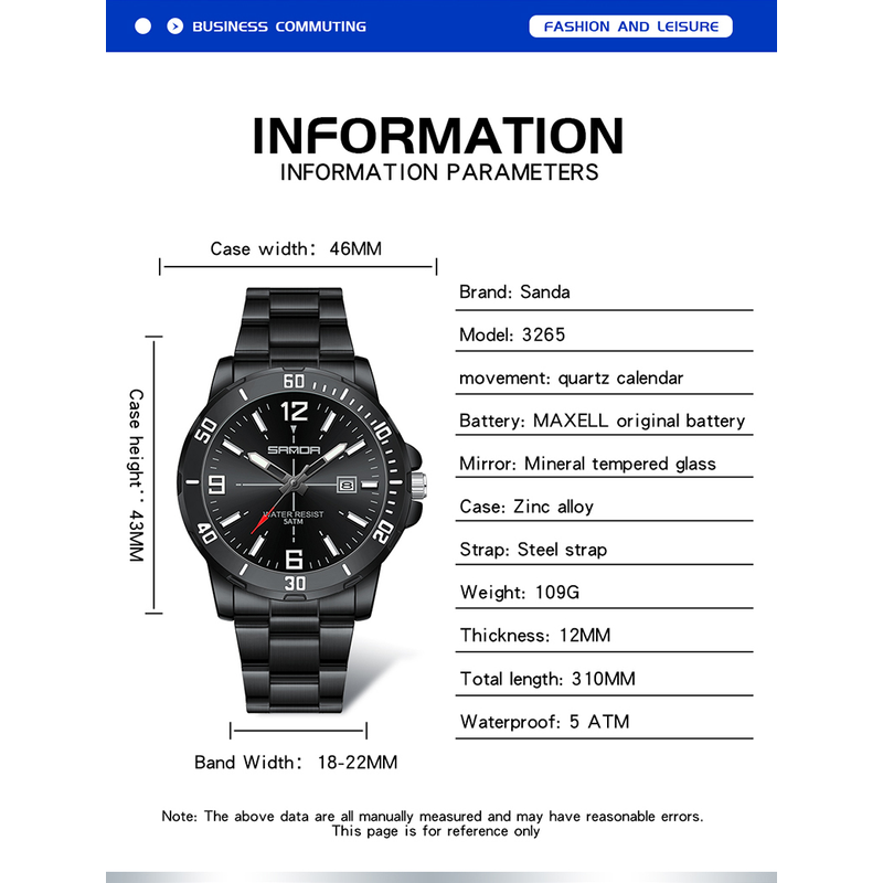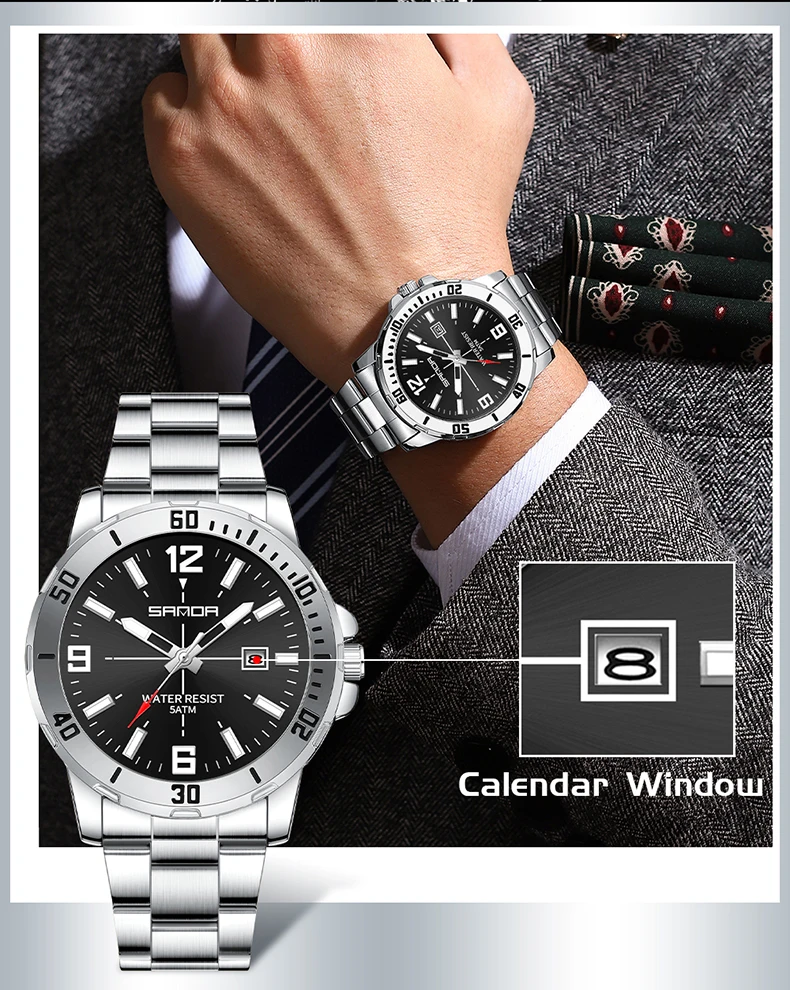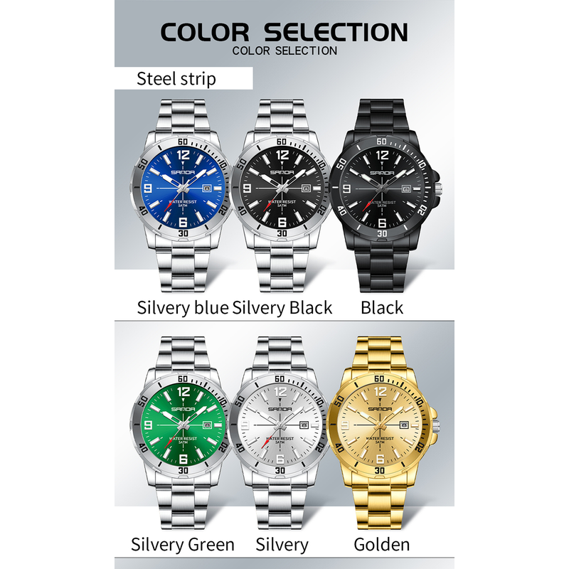 Fashion SADNA 3265 Business Men's Quartz Watch Large Dial Waterproof Calendar Night Light New Men's Quartz Watch