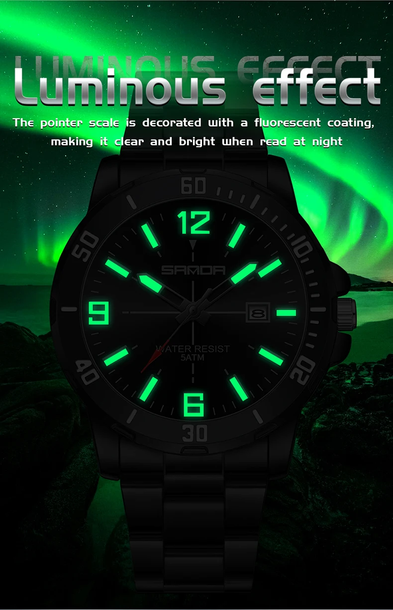 Back Light,Shock Resistant,Luminous,Auto Date,DIVER,Water Resistant,swim