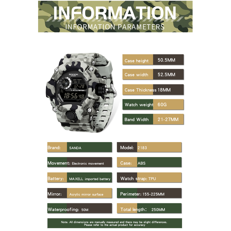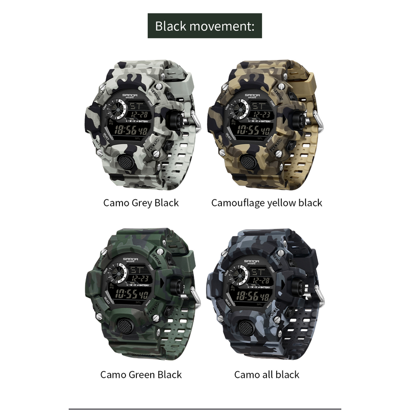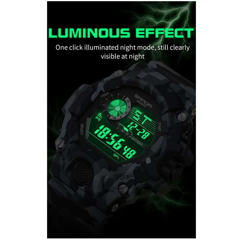 Fashion SANDA 2183 Men's Camouflage Military Multi functional Waterproof Day Night Light Calendar Men's Electronic Watch 2025