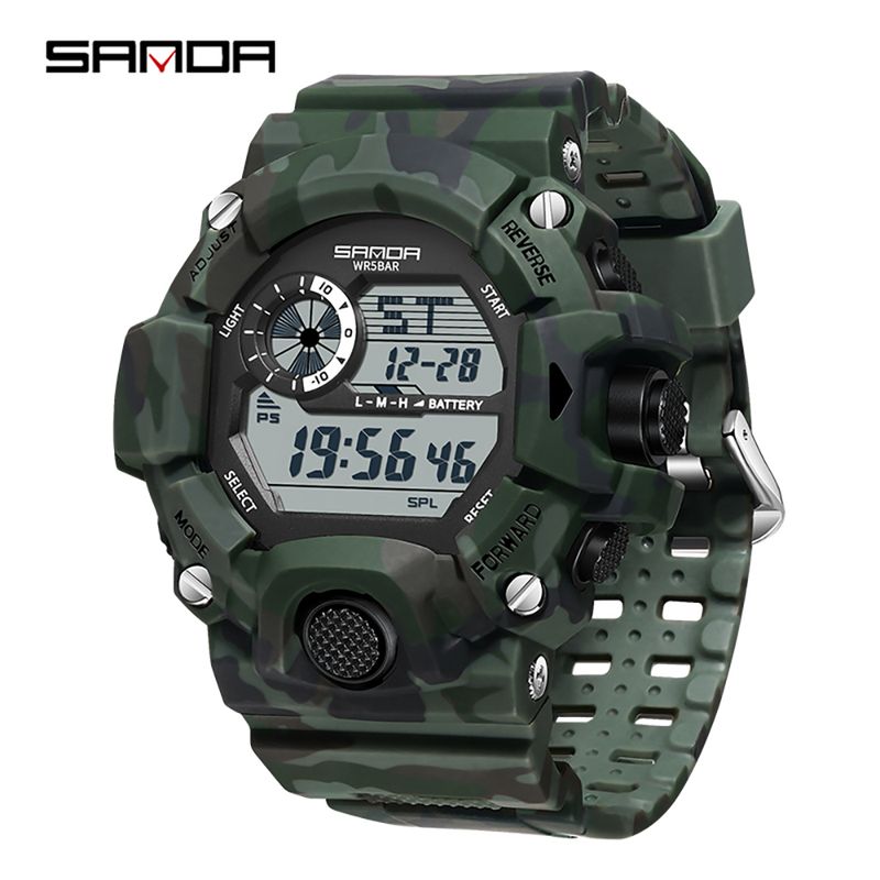Fashion SANDA 2183 Men's Camouflage Military Multi functional Waterproof Day Night Light Calendar Men's Electronic Watch 2025