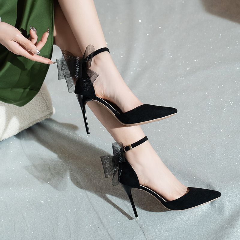 Fashion Silk Bowknot Satin Women Pumps Summer Pointed Toe High Heels Party Wedding Stripper Heels Lady Shoes Big size 45
