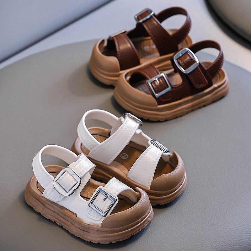 Fashion Solid Korean Kid Sandals Summer New Versatile Anti Slip Soft Bottom Girl Boy Beach Sandal Kindergarten Anti Kick Sandals