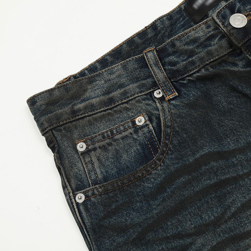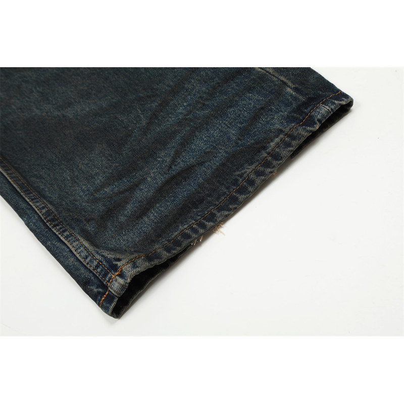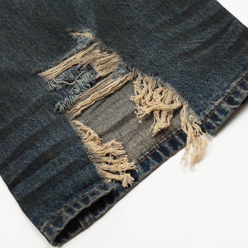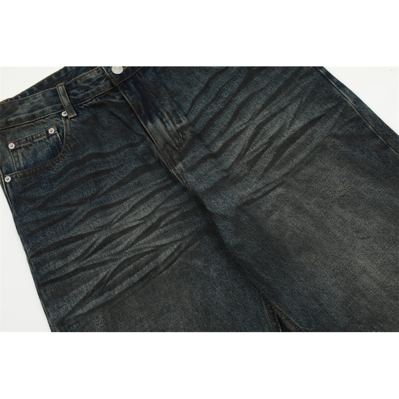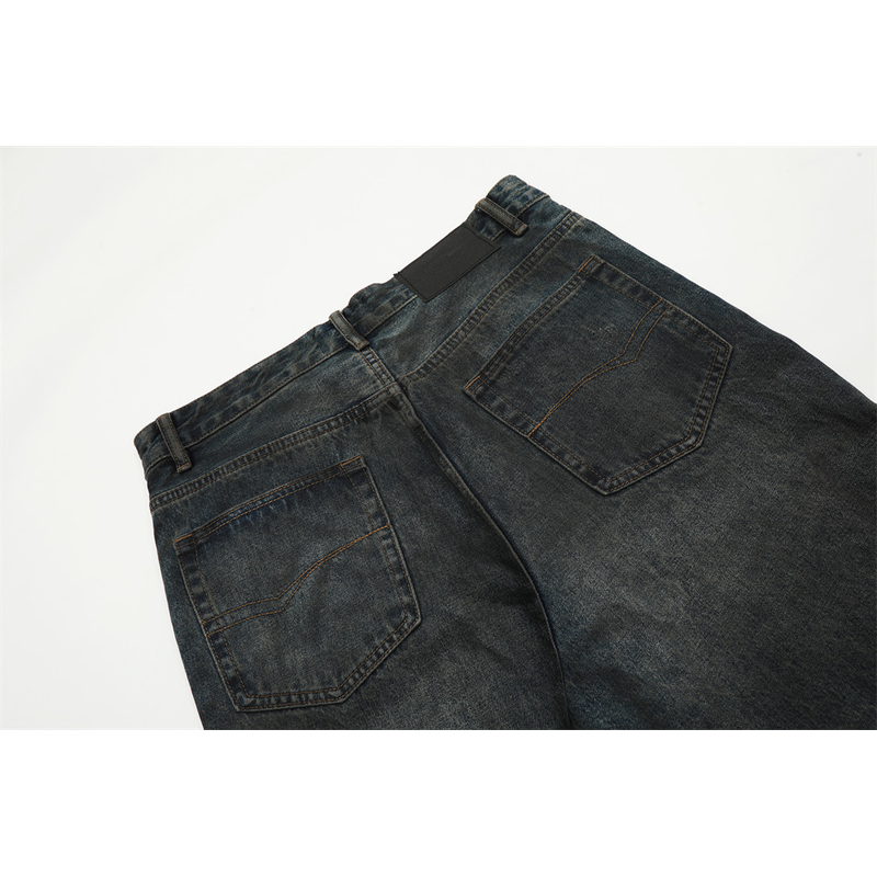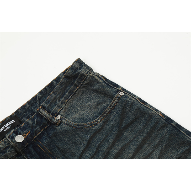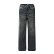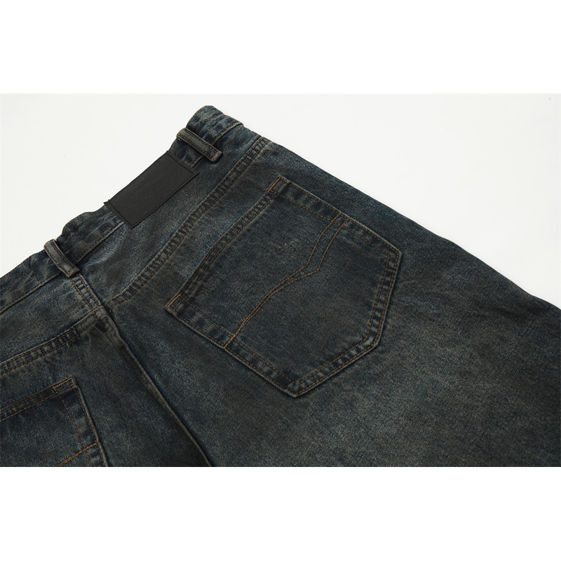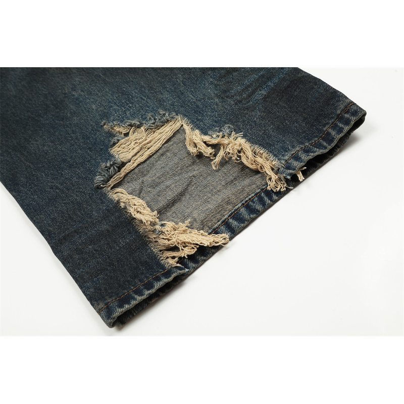 Fashion Straight Denim Trousers Hip Hop Men Dirty Blue L