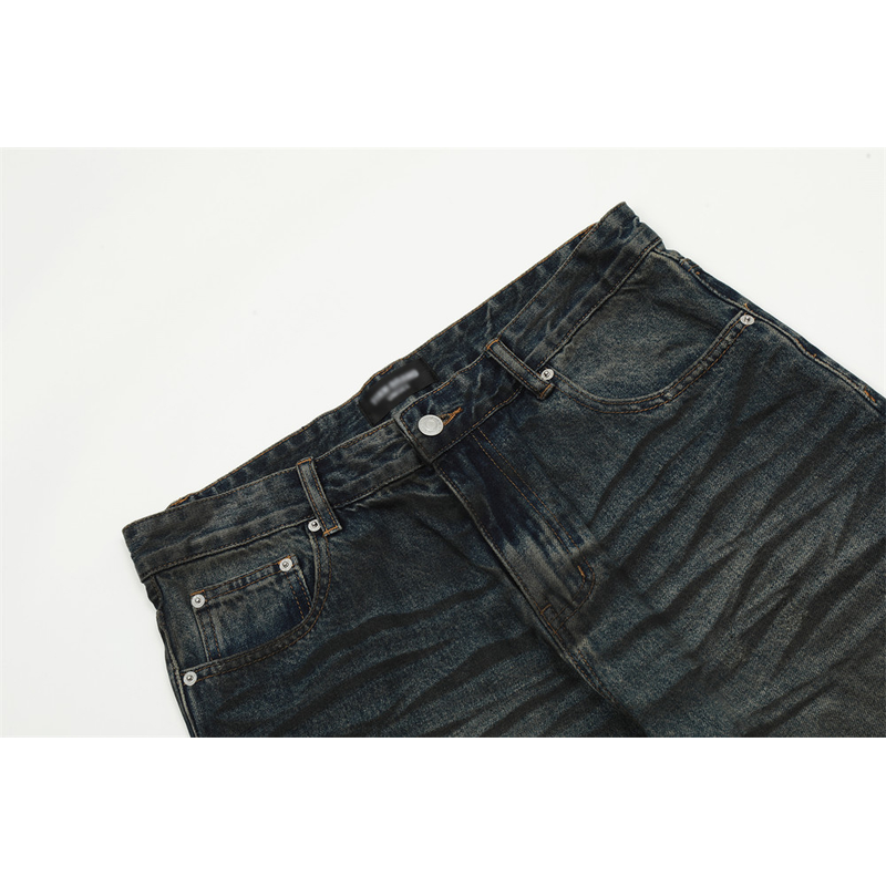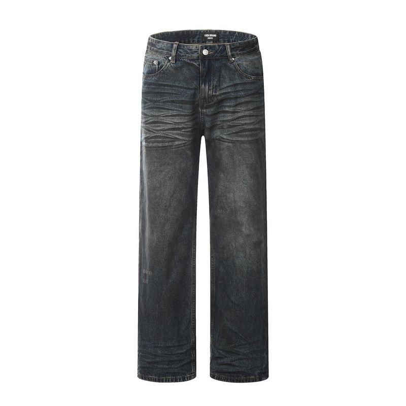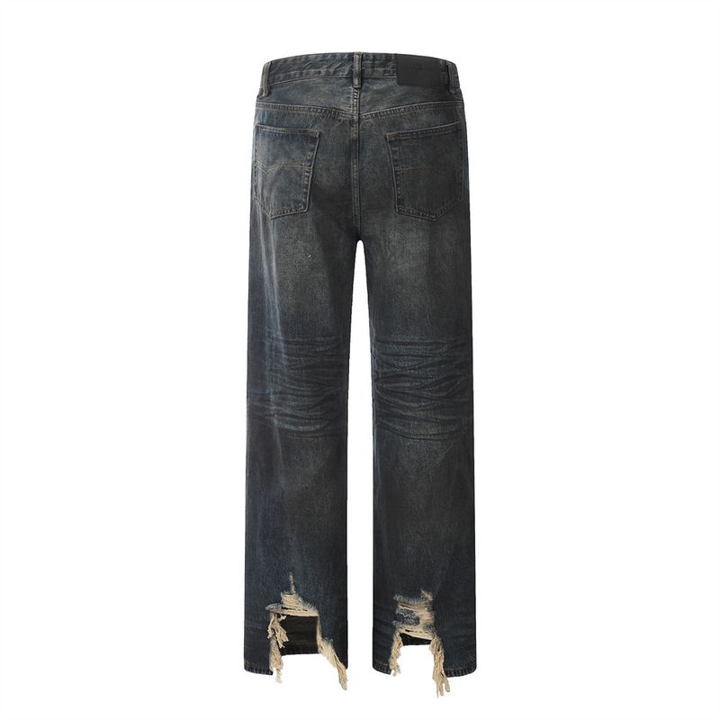 Fashion Straight Denim Trousers Hip Hop Men Dirty Blue S