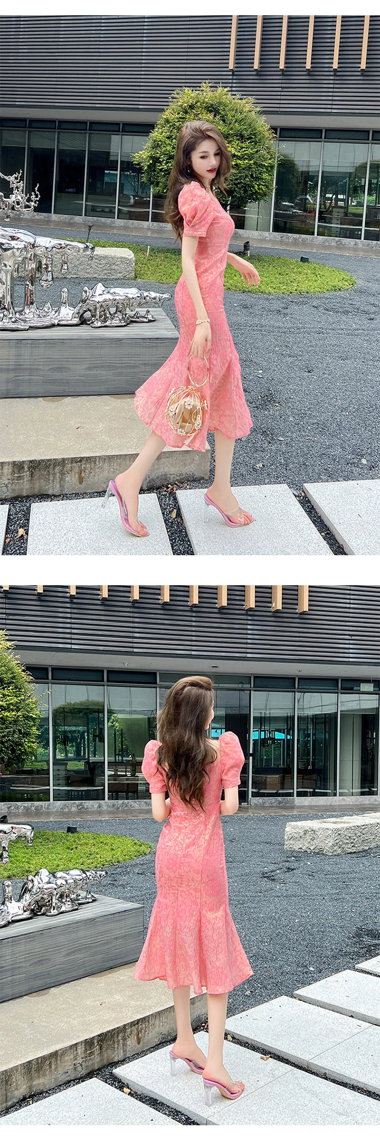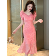 Fashion Summer Evening Long Dress For Women Elegant Retro Floral Glitter V-Neck Slim Midi Party Gown Robe Mujer Vestidos Fiesta