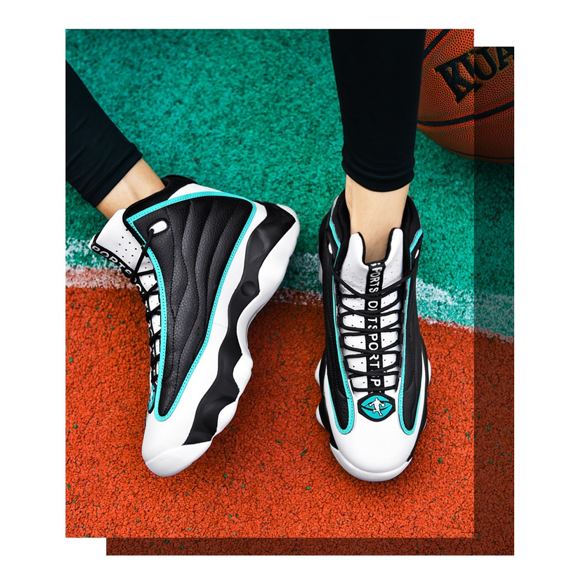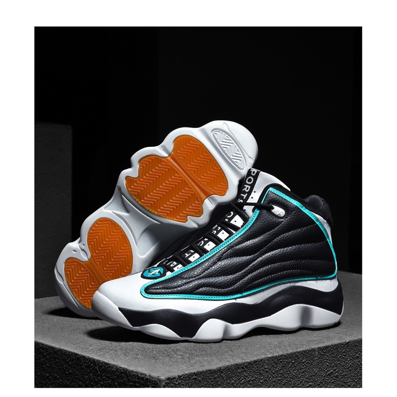 Fashion Thick Bottom Wear-resistant High-top Trendy Running Basketball Shoes AJ13 Black And Pale Blue 41