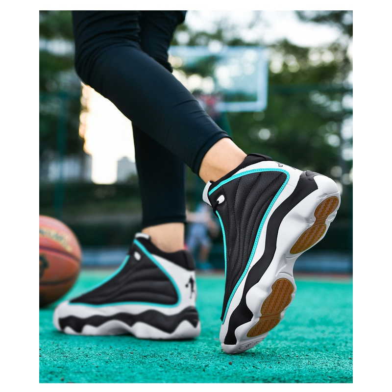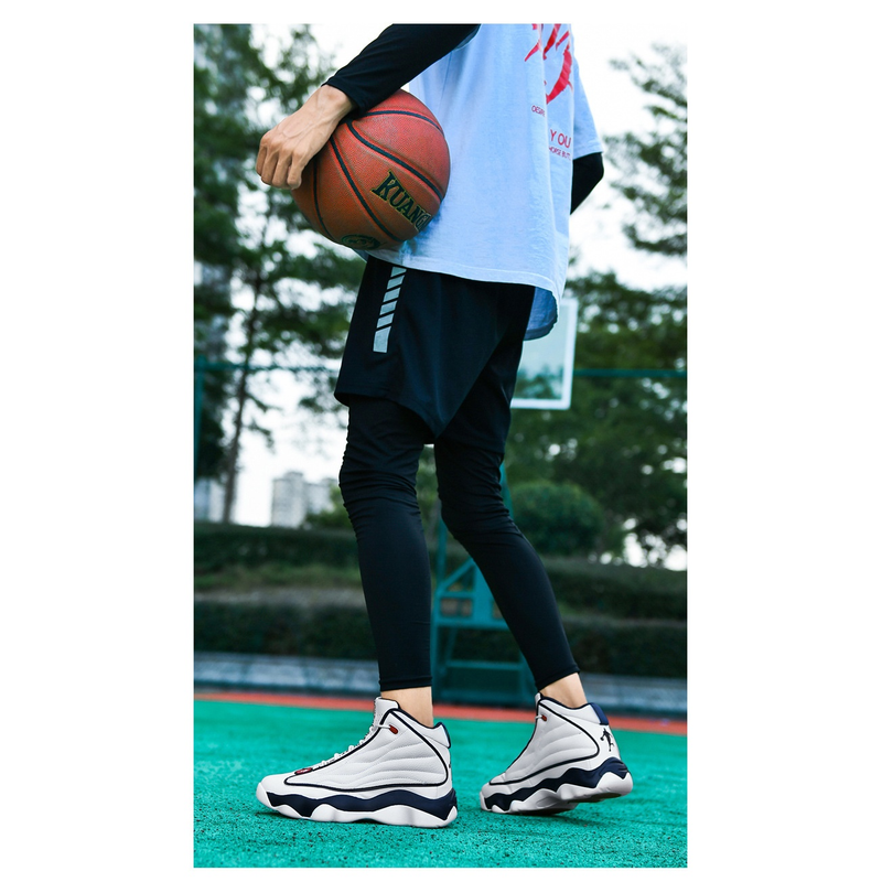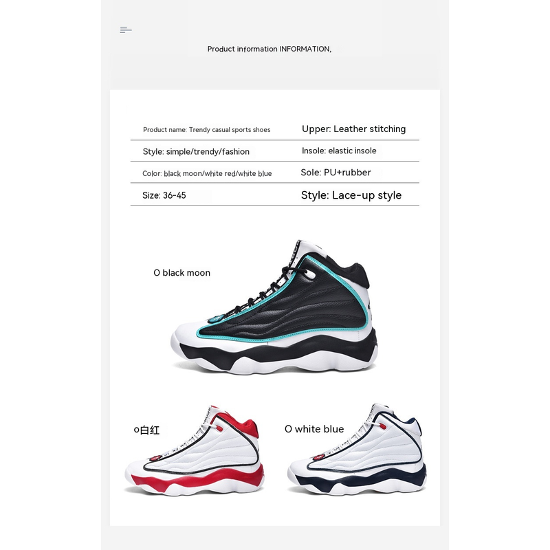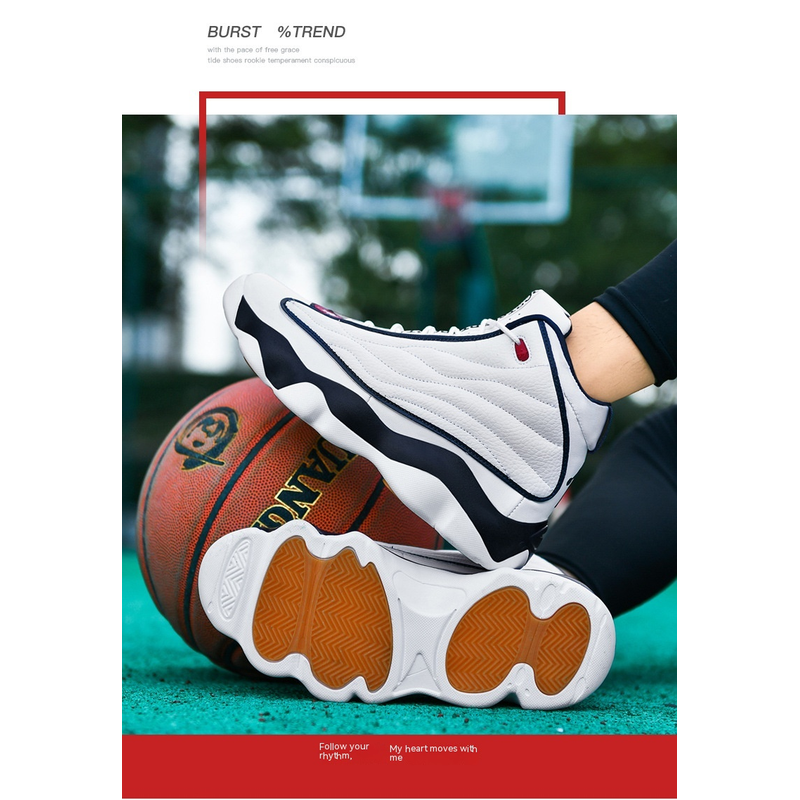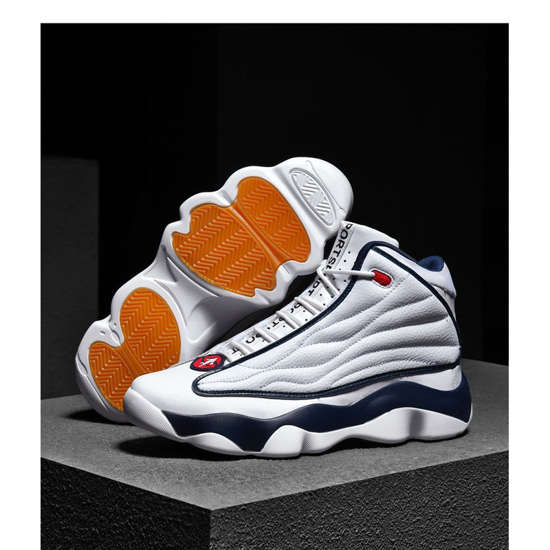 Fashion Thick Bottom Wear-resistant High-top Trendy Running Basketball Shoes AJ13 White Blue 37