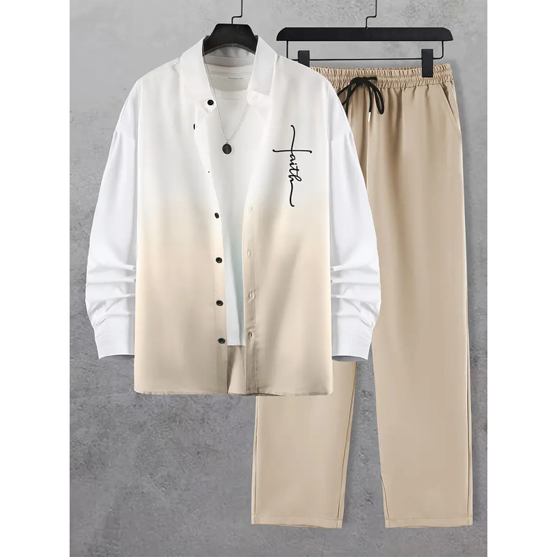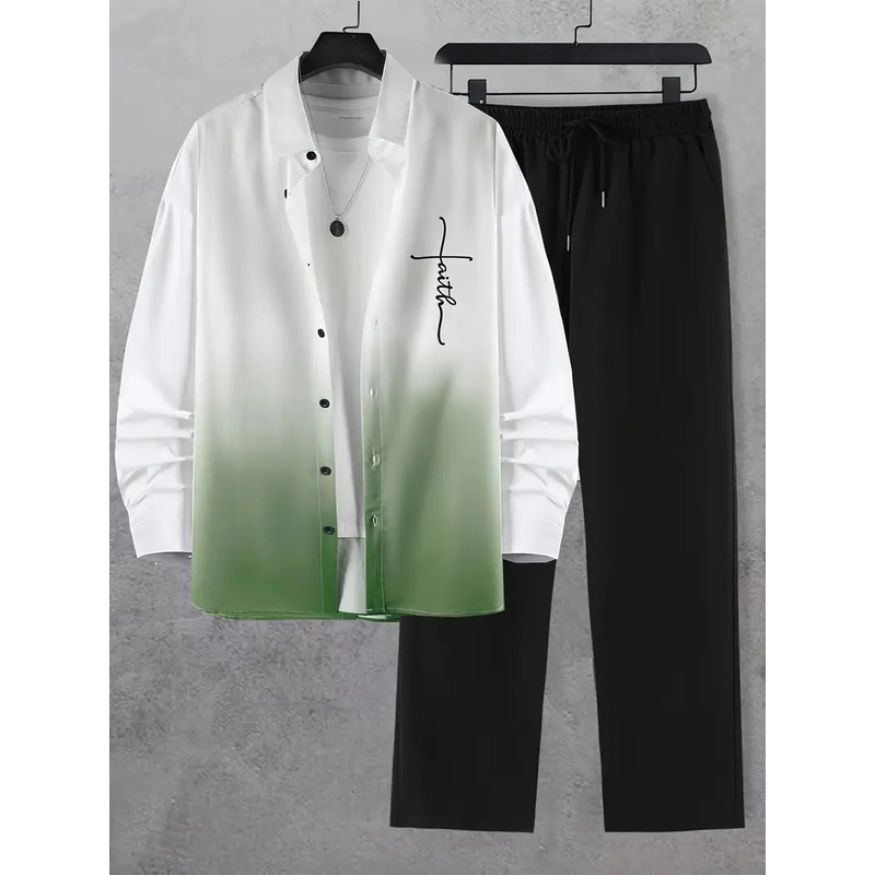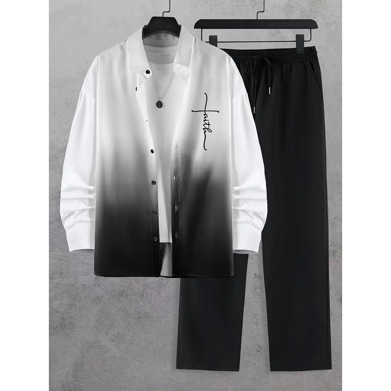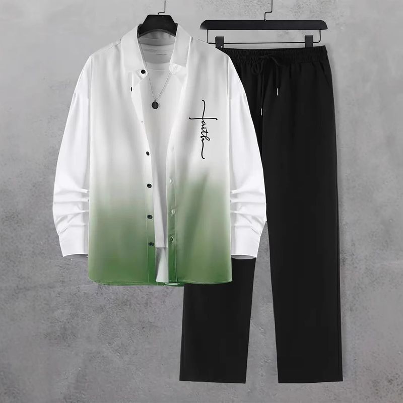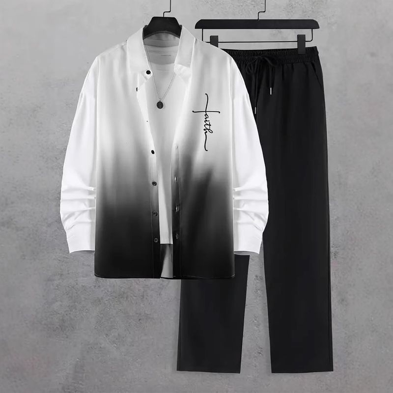 Fashion Trend Color Gradient Long Sleeve Shirt Trousers Suit CW091 S