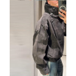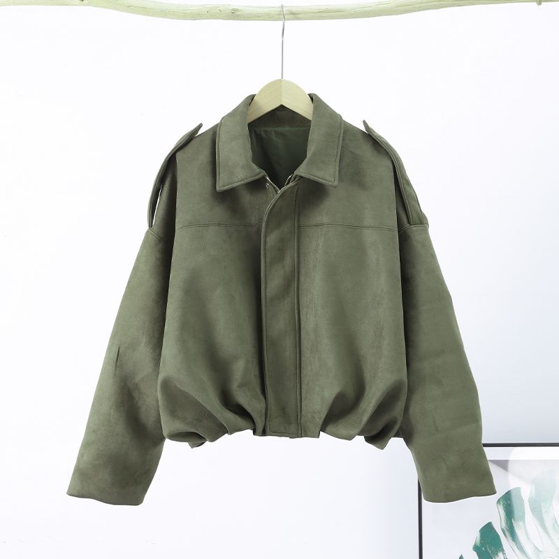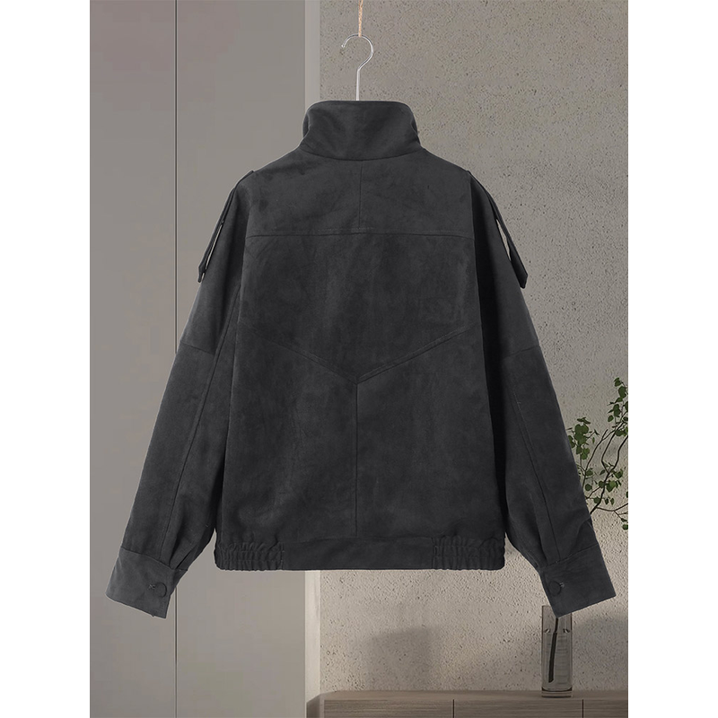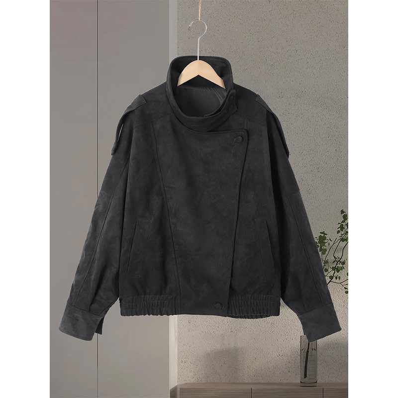 Fashion Women's Suede Jacket Stand Collar Full Sleeve Zipper Button Asymmetric Jackets 2026 Spring Street Dark Grey Lady Coats