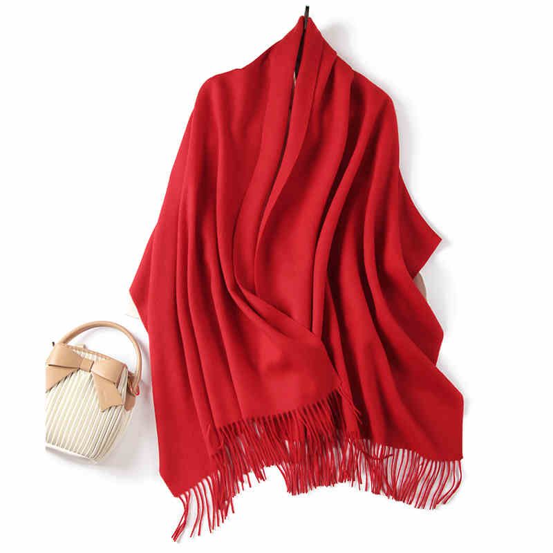 Fashionable All-matching Australian Pure Wool Solid Color Shawl Red 70X200cm