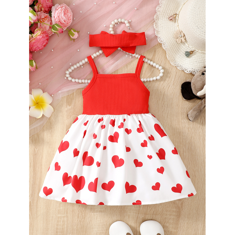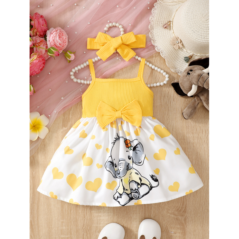 Fashionable baby girl summer trend cute heart with cartoon elephant suspender dress