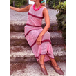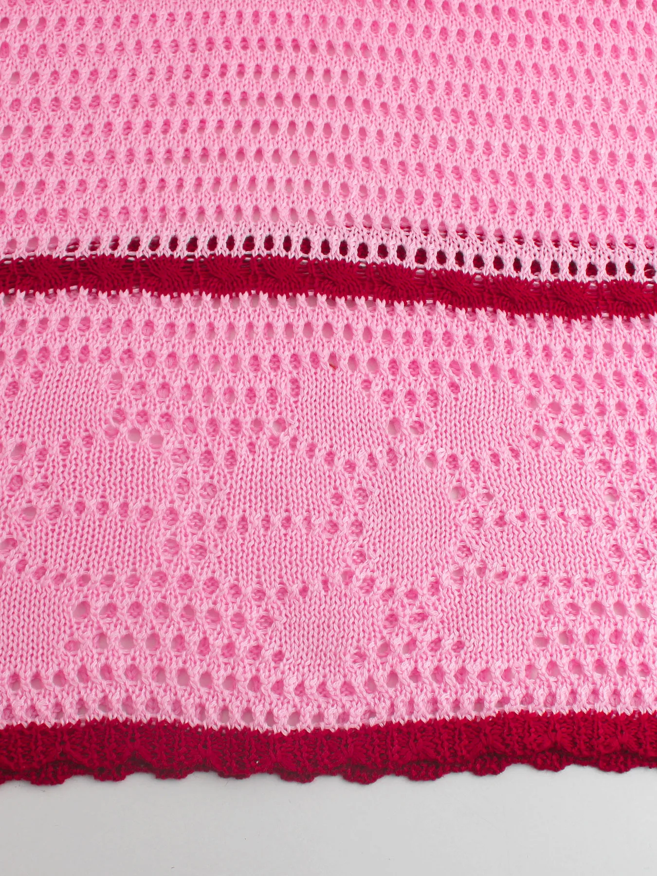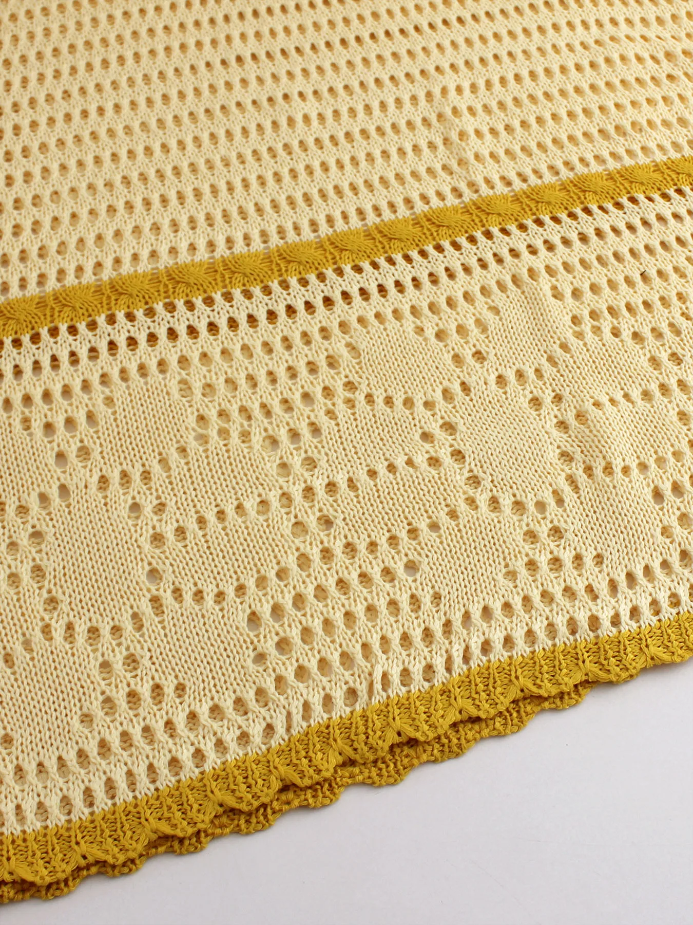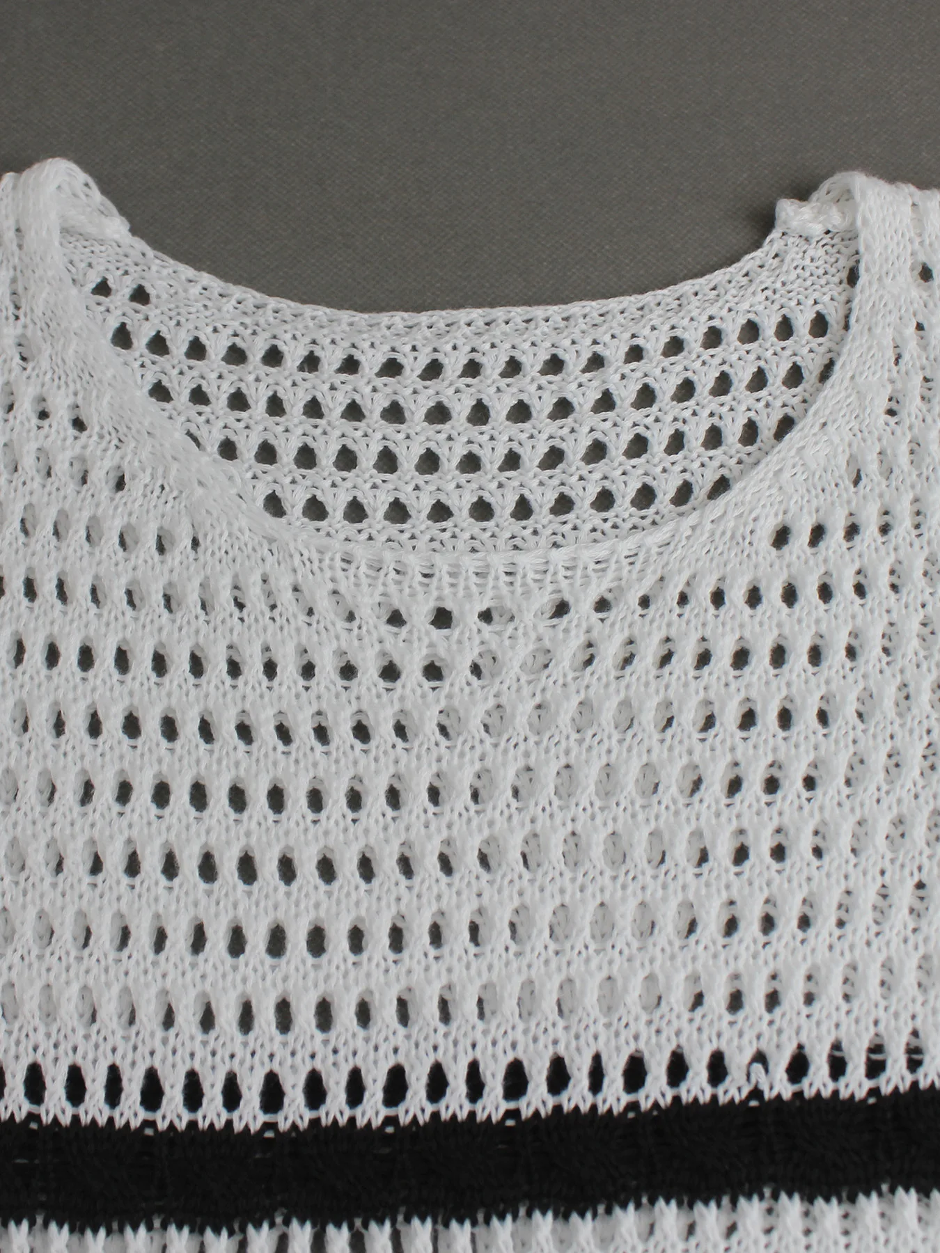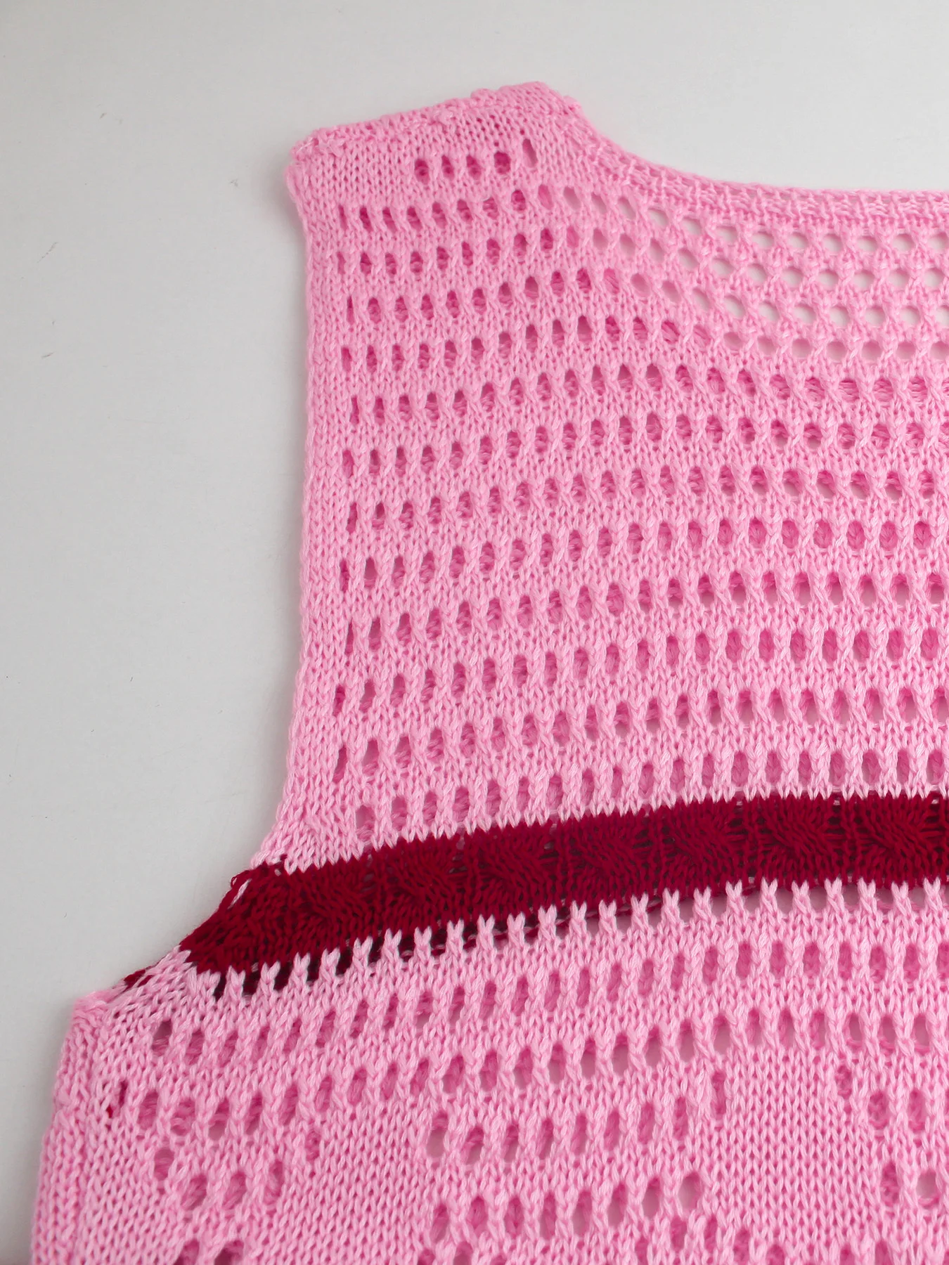 Fashionable Contrasting Hollow Knitted Long Skirt 2026 Spring Summer New Casual Beach Vacation Round Neck Sleeveless Vest Dress